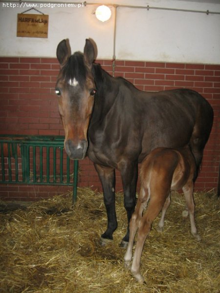 Prawie od małego z nami bo już 11lat:) Wspaniała klacz hodowlana i użytkowa, jednym słowem do wszystkiego. Matka z niej cudowna. Dała nam dwa razy bliźniaki. Odchowała 5 potomków. Nadal uczy. Swego czasu startowała w skokach i wystawach.